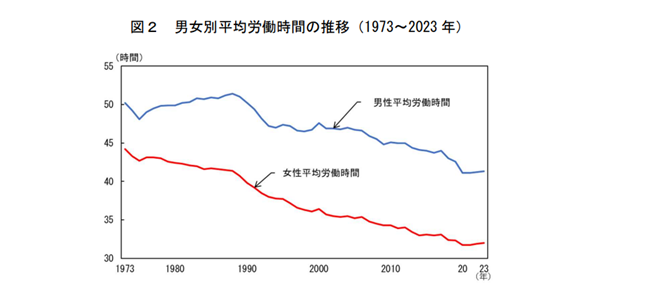 (下記図表は「わが国の過去 50 年間(1973 年~2023 年)の労働時間の推移についての考察(厚生労働省 労働経済分析レポート No.4)」から)001203082.pdf